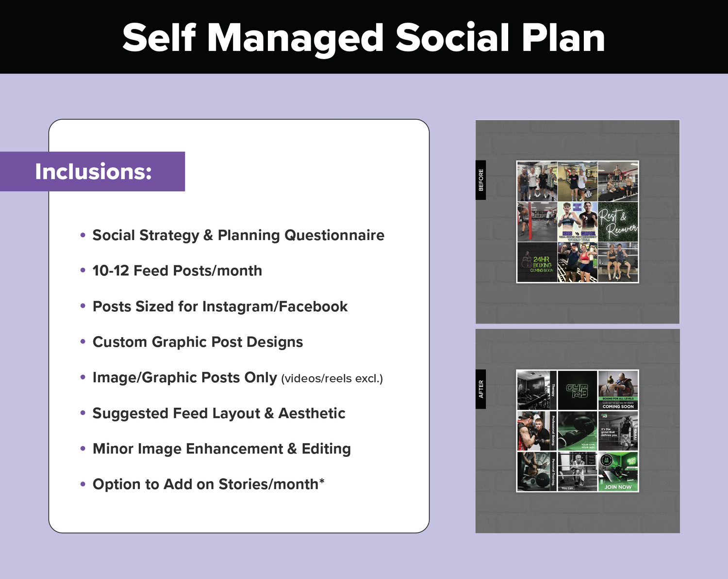 We get it, hiring a social media marketer can be expensive, and not all business owners have the budget to invest in SMM, especially when starting out. Our Self Managed Social Plan has been created with small business owners in mind, getting the help they need with social media management without breaking the bank.